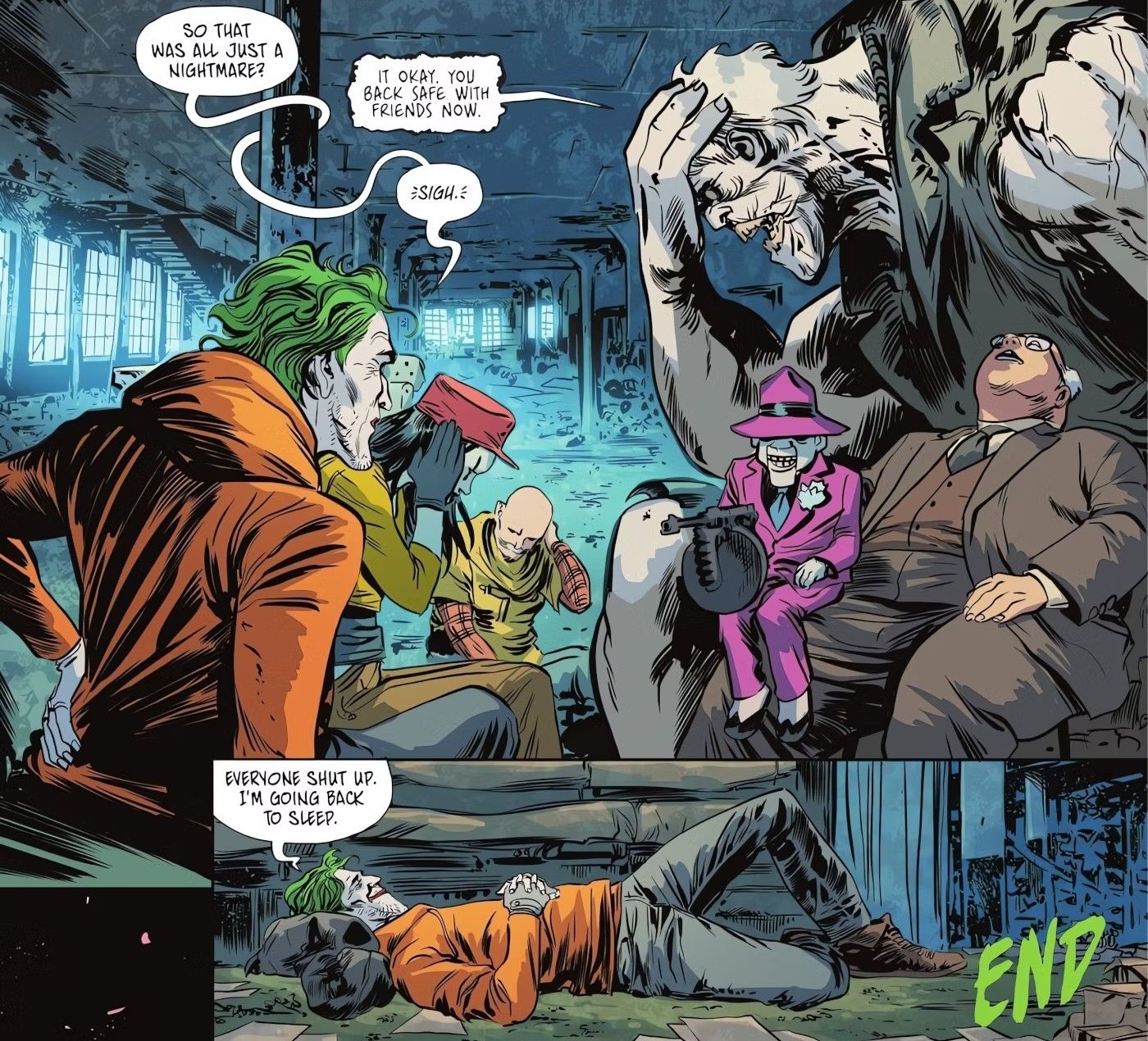 - Los lectores atentos notarán que el equipo que rodea al Joker en su pesadilla es el mismo que reunió en El Joker: el hombre que dejó de reírconfirmando su identidad como el verdadero Príncipe Payaso.