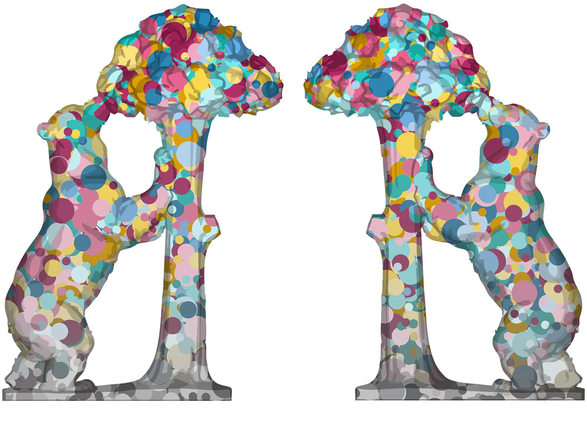 Su diseño está compuesto por puntos de colores saturados y vivos, que nos representan a cada uno de nosotros. Un color, pura vida, que nos devolvieron los trabajadores esenciales en un momento en el que se cernía una absoluta oscuridad sobre todos. Sintético y expresivo, su trabajo quiere trasladar la idea de que la esperanza y la alegría son valores fundamentales para afrontar mejor un trance como el que hemos padecido: “Cuando tienes hijos pequeños, no te puedes permitir pensar en negativo. Ellos también tienen que aprender la importancia del optimismo en los momentos difíciles, por eso quería que vieran un boceto alegre, vivo y esperanzador”, detalla.