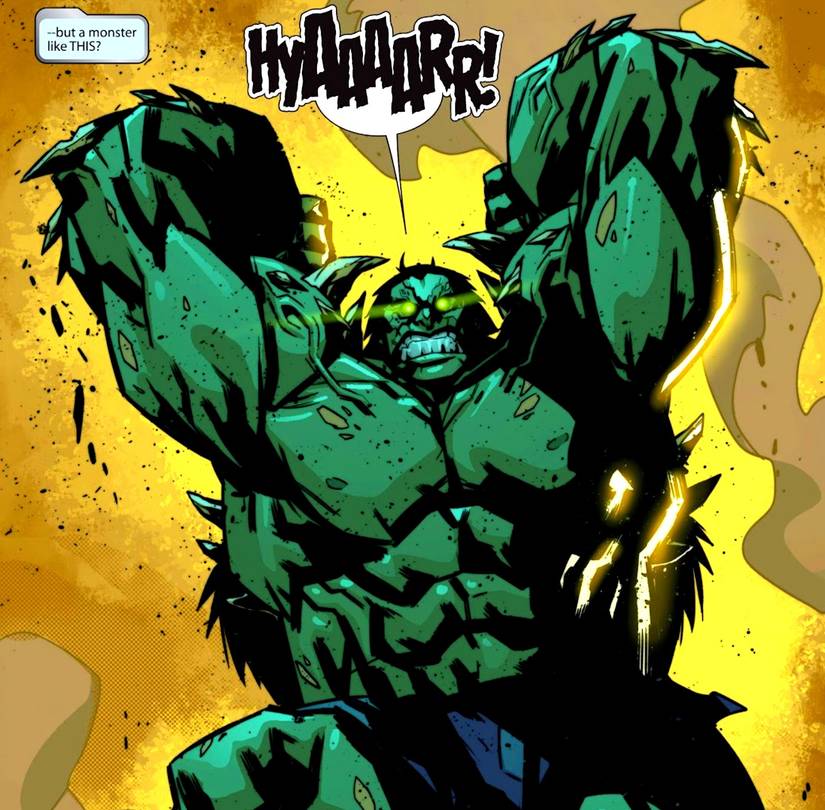 Este Hulk es aún más monstruoso, y aparentemente duplica el tamaño del Goliat Verde antes de su actualización. También brota picos intimidantes y se vuelve tan fuerte que Bruce afirma que es lo más fuerte que jamás haya vivido, y que se necesitaría “Los ejércitos combinados de la tierra” para detenerlo. En una hazaña asombrosa, Hulk arroja un jeep militar por el aire sin siquiera tocarlo, La onda de choque de sus gestos es tan fuerte que es como ser golpeado por el Hulk original.