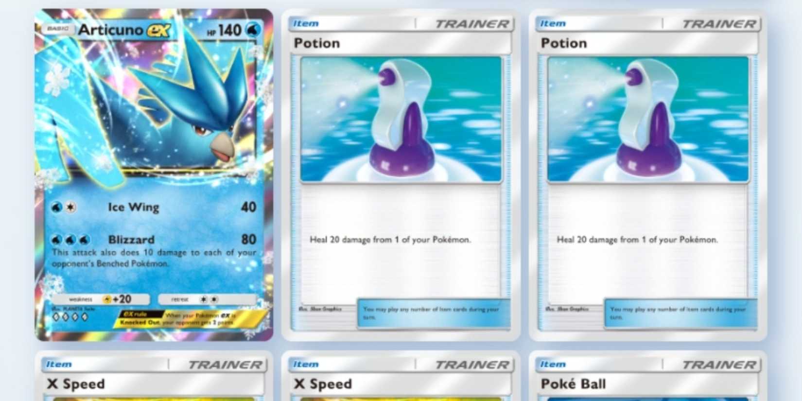 El mazo en cuestión se conoce como mazo de 18 Entrenadores. Este mazo utiliza dos copias de nueve cartas de Entrenador diferentes, incluidos elementos básicos como Poké Ball, Professor’s Research y X Speed. Algunas versiones incluso ejecutan el Hand Scope, que rara vez se usa, solo para completar las 18 cartas necesarias. Además de estas tarjetas de Entrenador, el mazo también ejecuta un solo Pokémon: Articuno ex.