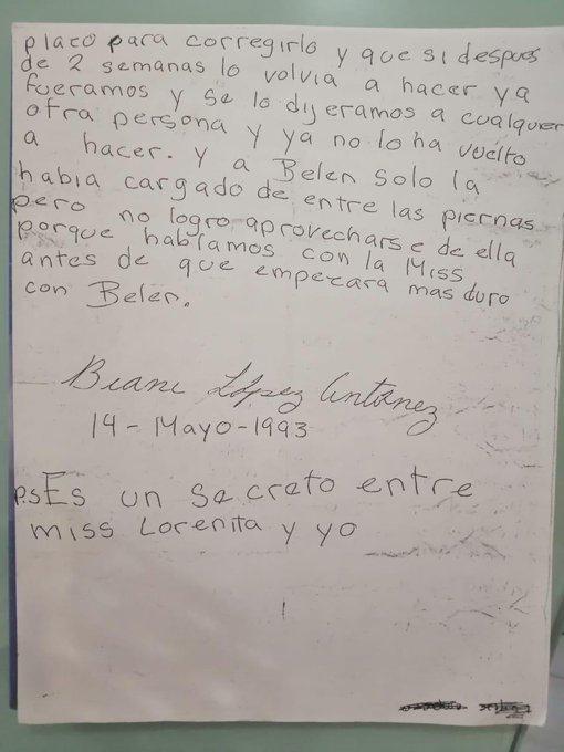 El escrito muestra el miedo a revelar lo que les estaba sucediendo, pues incluso termina con una petición: “P.S. Es un secreto entre miss Lorena y yo”.