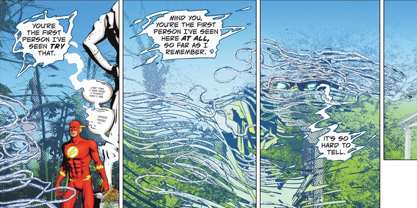 El flash El número 4 está escrito por Spurrier y dibujado por Deodato. Flash se siente atraído por el misterioso jardín que descubrió unas semanas antes. Allí, se enfrenta al Residente, un ser fantasmal que sabe más de lo que deja entrever. Se describen a sí mismos y al jardín como: “la realidad en su vibración más lenta. Este es el universo tal como existe en la abstracción de tu mente”. Mientras Flash deambula por el jardín, poco a poco se le va agotando la voluntad de irse, y el Residente casi parece estar incitándolo a quedarse.