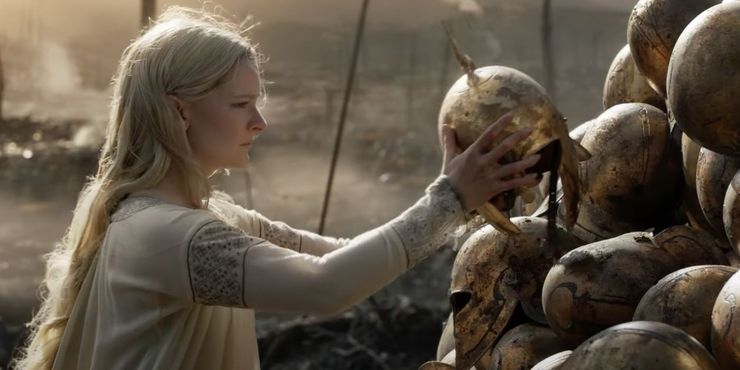 Tolkien escribe a Galadriel como una figura etérea cuya fuerza deriva de la magia, pero Los anillos del poder la muestra vistiendo una armadura y empuñando la espada élfica de Finrod, cambiando completamente el énfasis. esto no es sólo una elección creativa, sin embargo. La magia de Galadriel proviene principalmente de Nenya (uno de los tres Anillos de Poder de los elfos), que lleva consigo durante siglos. Nenya tiene un efecto transformador sobre Galadriel, pero aún no ha adquirido el anillo cuando Los anillos del podercomienza la historia de. La falta de joyas explica de alguna manera el cambio de imagen de Galadriel, pero Galadriel poseía una cualidad divina antes de aceptar a Nenya también. Fëanor incluso se obsesionó con su cabello y se inspiró en ella para sus Silmarils. Basado en imágenes del tráiler, Los anillos del poder no parece estar capturando la naturaleza de otro mundo de Galadriel como El Señor de los Anillos.