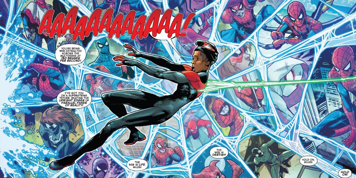 La corriente de Marvel Verso araña El evento cómico comenzó con la revelación de que la Web del Destino se puede usar para mover cualquier versión de Spider-Man a través del Multiverso. Los cómics consideran que el Hombre Araña de cada universo es lo que ellos llaman un "Tótem Araña", una entidad que ha sido vinculada a la Red de la Vida y el Destino, ya sea por medios mágicos o científicos. Verso araña # 1 vio a un universo alternativo Spider-Man llamado 'Spider-Zero' usar la arácnofrecuencia específica de Miles Morales para ubicar su posición precisa en el continuo espacio-tiempo, y luego extraerlo contra su voluntad. Lo cual es mucho más similar a cómo el clásico de los 90 Hombre araña Las series animadas utilizaron Madame Web de lo que cualquiera asumiría.