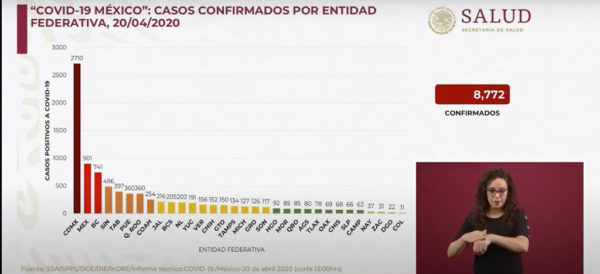 Hubo 26 nuevas muertes en México, con lo que suman 712; hay 8 mil 772 contagiados, 511 más que el día anterior. Multiplicado el número total por el factor de 8.2 del modelo de Vigilancia Centinela, el número de casos llegaría a más de 71 mil.