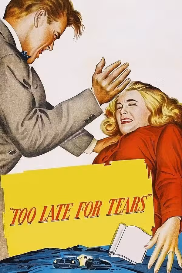 Dirigida por Byron Haskins, Demasiado tarde para las lágrimas se basa en un concepto relativamente simple: un matrimonio se hizo con una suma robada de 60.000 dólares, que entonces la mayoría consideraba una pequeña fortuna. Además de crear un conflicto en el matrimonio de la pareja, su nuevo dilema atrajo la atención del destinatario del dinero en efectivo, un criminal de carrera y chantajista, Danny Fuller.