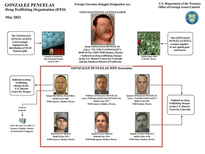 La OFAC también sumó a su lista a seis personas y una entidad por sus vínculos con la organización de González Peñuelas, entre ellos, los hermanos del presunto capo mexicano, Ignacio y Wilfrido. Los enlistados son parte de los objetivos prioritarios de la Operación Barrido de Dinero, un esfuerzo de colaboración entre la Administración de Control de Drogas de Estados Unidos (DEA, por sus siglas en inglés) y otros socios que buscan desmantelar las organizaciones de tráfico de drogas.