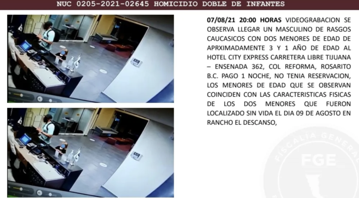 El Fiscal Central explicó que Matthew Taylor Coleman llegó con los niños el 7 de agosto al Hotel City Express, ubicado en la carretera libre Tijuana – Ensenada, en el municipio de playas de Rosarito.
