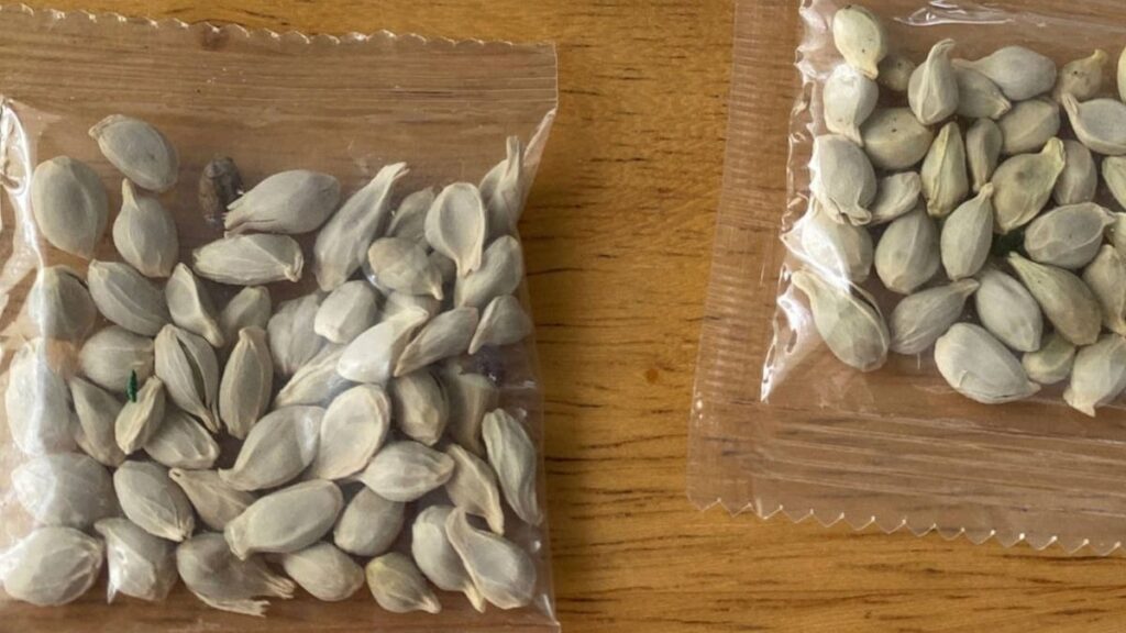 En las fotografías distribuidas por los departamentos estatales de agricultura, las semillas son de diferentes formas, tamaños y colores, y llegan en sobras de color blanco o amarillo.