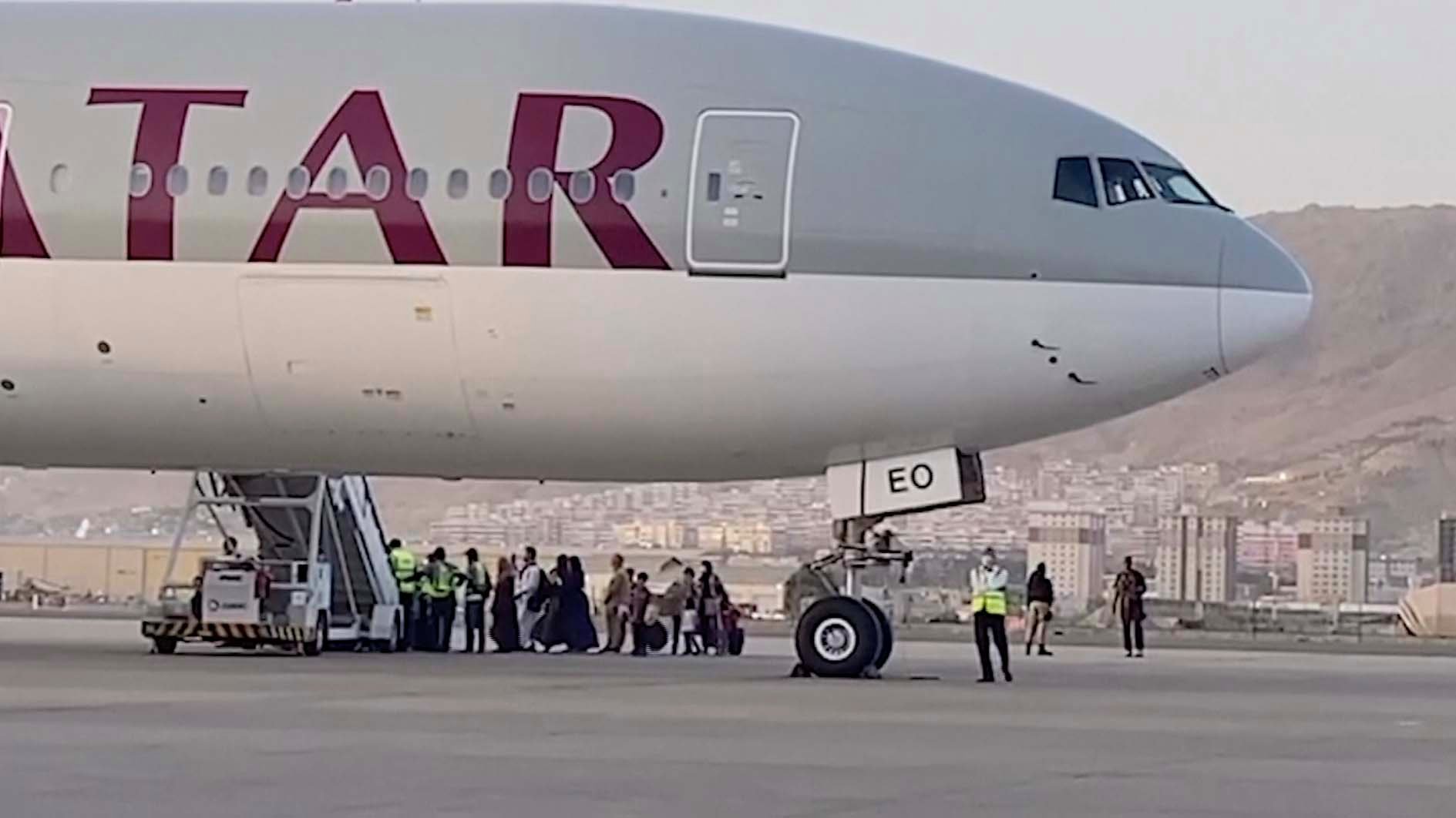 Desde la pista del aeropuerto, el enviado qatarí Mutlaq bin Majed al-Qahtani dijo previamente que el vuelo partiría con estadounidenses y otros nativos de países occidentales a bordo.