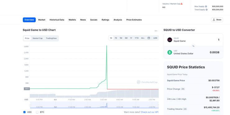 Avance rápido hasta noviembre de 2021, y algo similar ha sucedido nuevamente. La semana pasada, una nueva moneda llamada ‘SQUID’ comenzó a circular como Calamares-criptomoneda temática. La moneda obviamente no tenía afiliación con Netflix o los creadores del programa, pero usó el nombre para atraer a personas familiarizadas con la serie. Gizmodo informa que el sitio web ahora eliminado estaba plagado de errores ortográficos y gramaticales, la cuenta de Twitter de SQUID no permitió ninguna respuesta a sus publicaciones y el canal oficial de Telegram de la moneda prohibió los comentarios de nadie. Todas las banderas rojas, ¿verdad? Eso no detuvo a los principales medios de comunicación como CNBC y BBC de informar las noticias. SQUID siguió aumentando en popularidad, el valor de la moneda se disparó en un 83,000 por ciento y alcanzó un valor máximo de $ 2,861 por moneda. Sin embargo, alrededor de las 5:40 a.m. ET del 1 de noviembre, el valor de SQUID se redujo a $ 0.