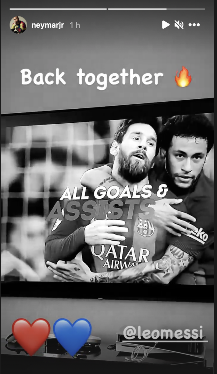 A la espera de su presentación oficial, uno de los primeros que se refirió al arribo del astro argentino a su nuevo club fue Neymar Jr, amigo del ’10’ del Barcelona, quien escribió en Instagram: “Back Together” (“De vuelta, juntos”):