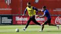Felipe Monteiro ha trabajado este jueves al margen del grupo, dentro del plan que tiene el cuerpo técnico del Atlético de Madrid para repartir la carga de trabajo en sus jugadores.