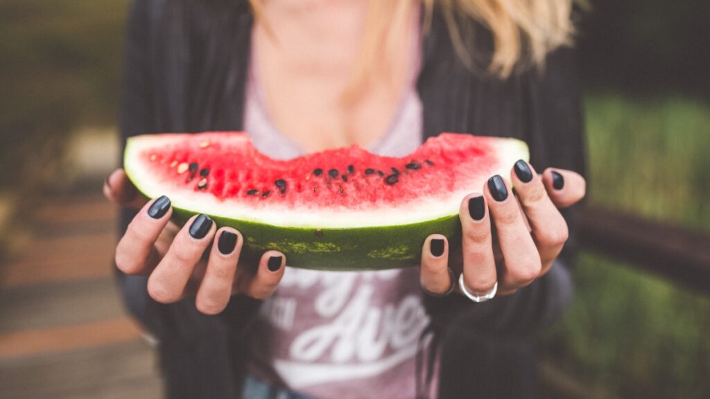 - Sandía: es una de las frutas estrella cuando llega el verano, sin duda clave a la hora de perder peso consumiendo fruta. Unos 200 gramos te aportan únicamente entre 70-90 calorías, y puedes tomarla tanto en porciones como en zumos o batidos.