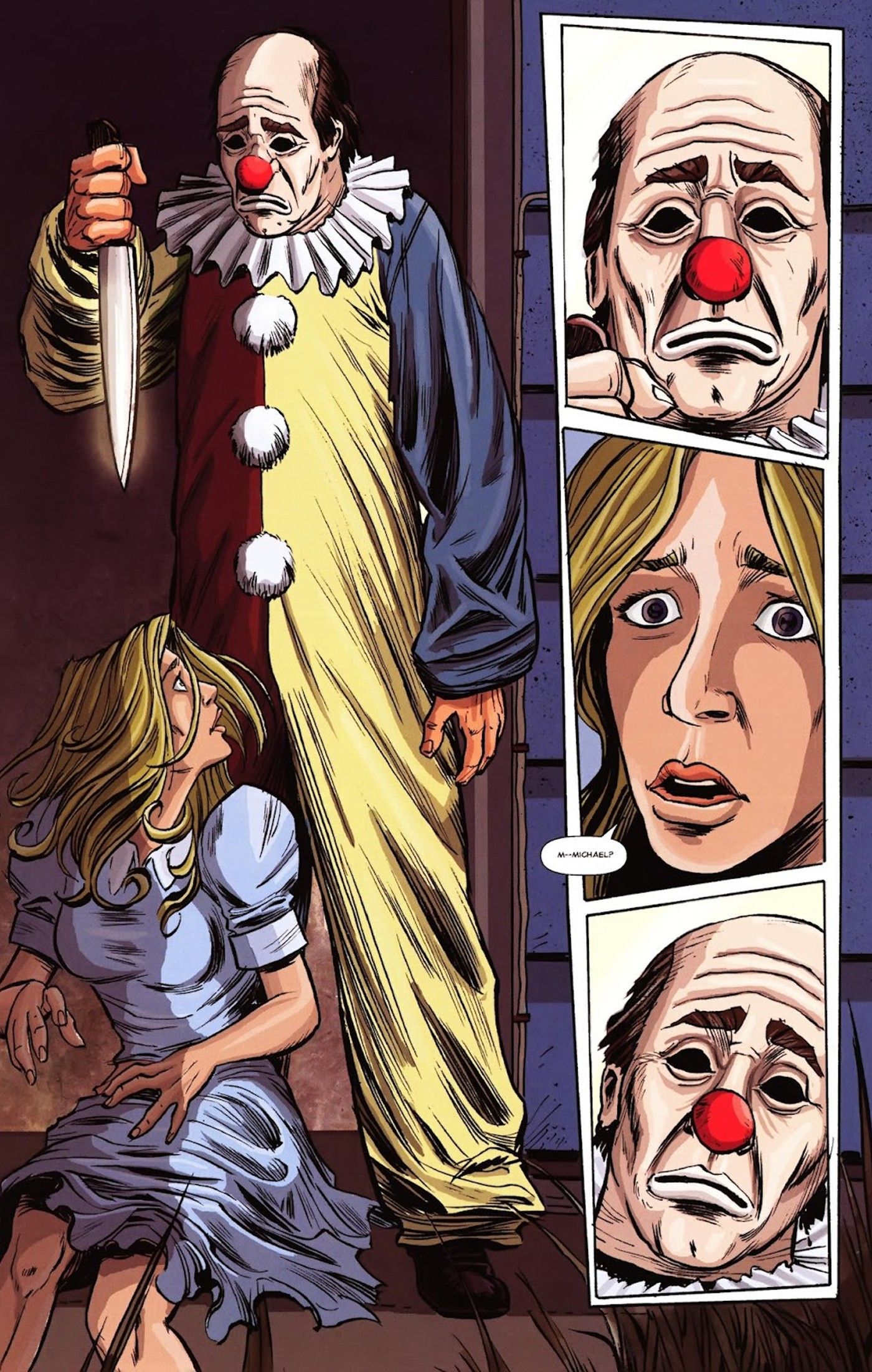 “/> Aquellos que se preguntan qué sucederá a continuación en la miniserie de tres números se sentirán decepcionados al saber que el tercer número nunca se publicó antes de que la editorial cerrara. Sin embargo, el impacto duradero de esta serie secuela de corta duración es que es el primer y último vistazo de lo que podría haber sido en un mundo donde Michael Myers ataca a adolescentes vestidos como Emmett Kelly. Como se ve en este pequeño vistazo persiguiendo a Laurie, y luego cuando mata a Jimmy de Víspera de Todos los Santos IIes un espectáculo inquietante y espeluznante ver a un payaso triste y sin alma perseguir agresivamente a sus víctimas y habría sido una alternativa aterradora a la máscara de William Shatner.