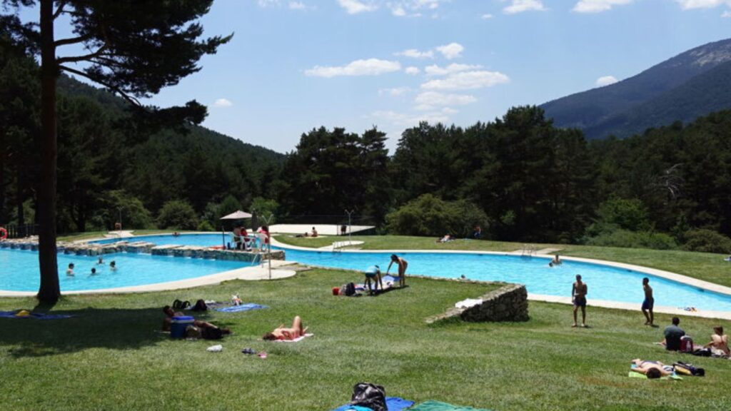 Como vemos en el vídeo, las piscinas están rodeadas de césped y pinos silvestres, lo que crea un ambiente fresco y agradable. Además, cuentan con vestuarios, duchas, aseos, enfermería y un bar merendero donde puedes comer o tomar algo. También en la recomendación hecha por rede sociales, se explica que tienen un merendero y que lo mejor de todo son las vistas a la Sierra.