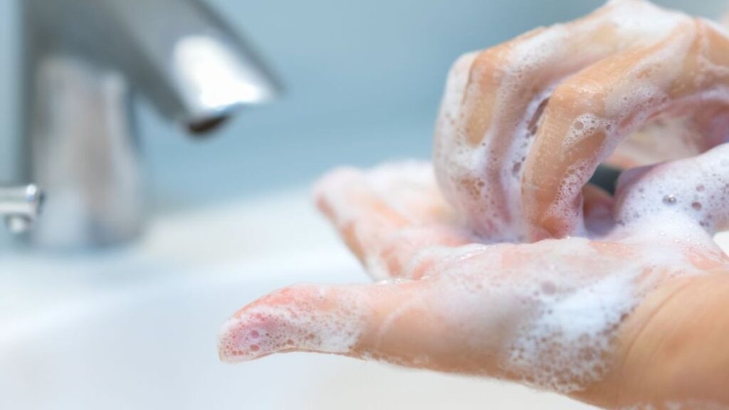 - Lo primero es mojarse las manos con agua tibia o fría, y enjabonarse.