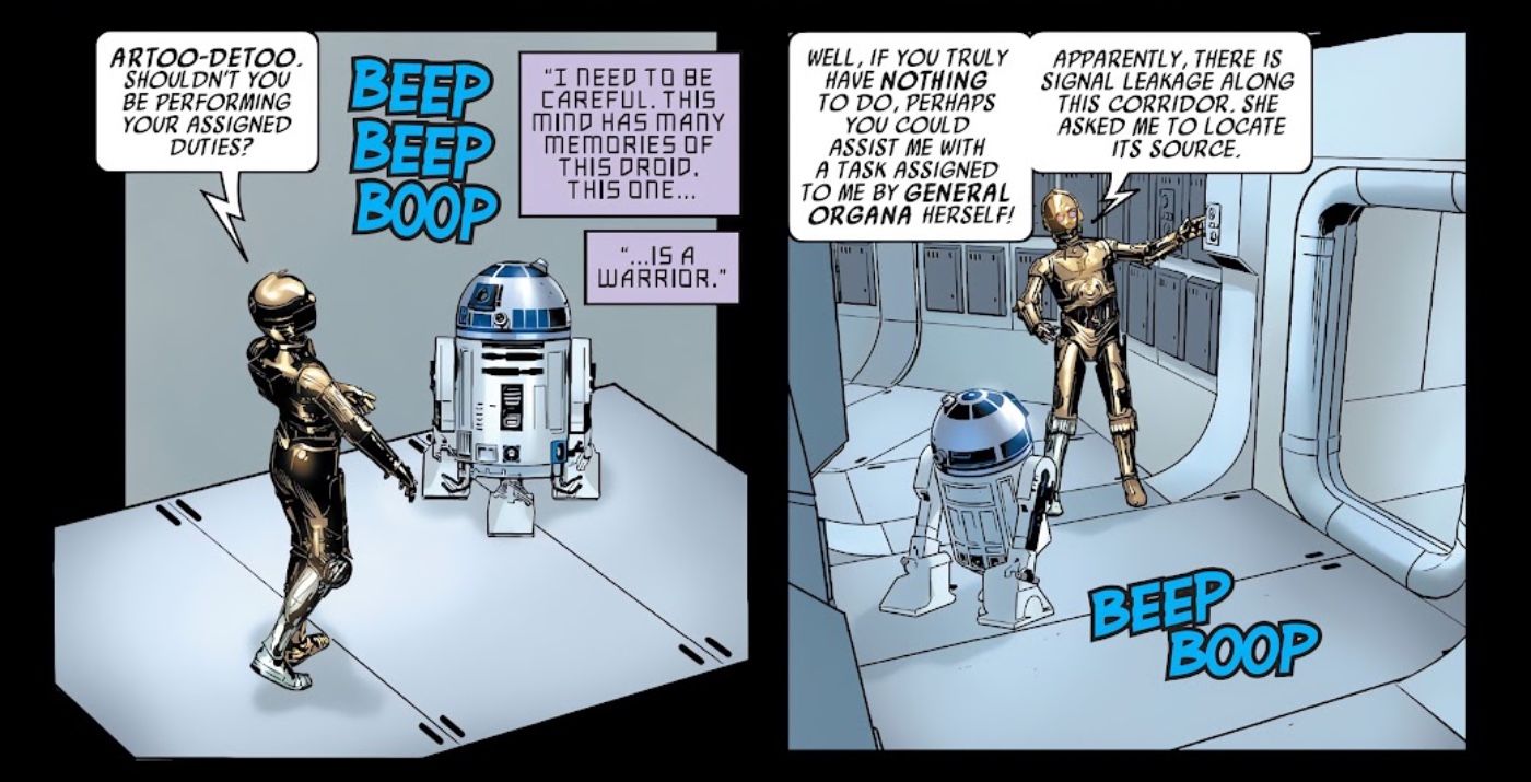 Es el antiguo y peligroso enemigo conocido como Scourge el que revela las verdaderas capacidades de Artoo. Haciéndose pasar por Threepio, la Plaga piensa: “Necesito tener cuidado… Éste es un guerrero.“