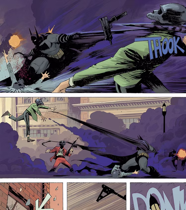 En un fanart recién publicado de bosslogic, Absolute Batman le propina una paliza terrible y sangrienta a un grupo de secuaces. (probablemente trabajando para Máscara Negra, el némesis de Batman en Absoluto El tamaño gigantesco del héroe está perfectamente capturado, y el artista le puso el apodo de “canon”. “El Batman absoluto… que levanta”.