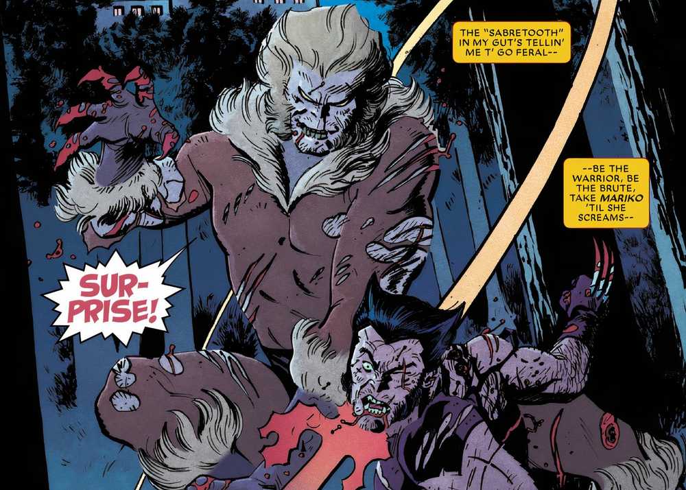 En Wolverine de Chris Claremont #1 (con Art de Tom Reilly), Wolverine se enfrenta cara a cara con su Arch Enemy, Sabretooth. Sabretooth viajó a Japón para matar a la mujer que Logan ama, Mariko Yashida, pero Wolverine no va a dejar que eso suceda. Desafortunadamente, Sabretooth rápidamente demuestra que es demasiado para que Wolverine maneje solo. Afortunadamente, los X-Men tenían la espalda de Logan.