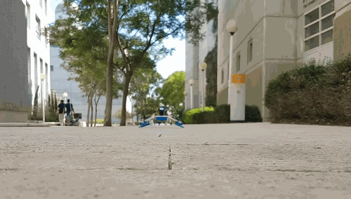 Bueno, hay muchas buenas razones por las que es difícil crear un híbrido de este tipo, pero el equipo, liderado por David Zarrouk, los superó con la ayuda de los componentes de drones ligeros de gran potencia de hoy. El resultado es un robot que puede volar fácilmente cuando lo necesita, luego aterriza suavemente y, al inclinar los brazos del rotor hacia abajo, dirige la misma fuerza motriz a cuatro ruedas.