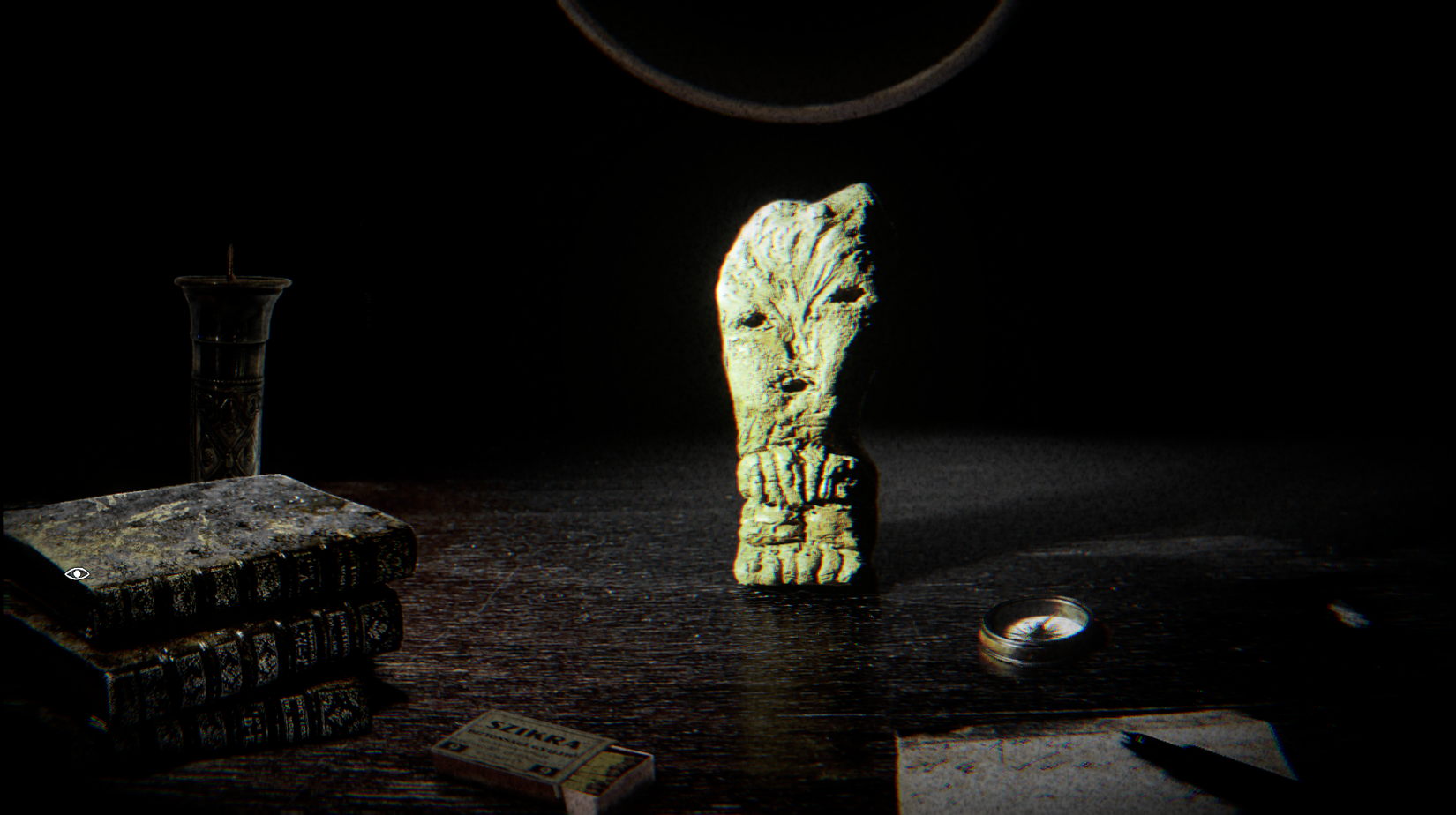 A medida que descubres más sobre el artefacto, puedes investigar sus orígenes en los libros a tu izquierda. Poco a poco, los secretos de la extraña estatua de arcilla se descubren a través de las entradas de enciclopedia separadas que buscas, revelando Una maldición enraizada en el folklore húngaro.
