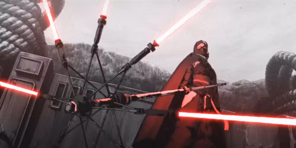 Estas escenas coinciden con cualquier cosa que habrás visto en programas como Star Wars: The Clone Wars y Rebeldes de Star Wars. El duelo entre Ronin y el líder de los bandidos Sith en Star Wars: Visions Temporada 1, Episodio 1, “The Duel”, por ejemplo, es tan dinámico y enérgico como la pelea entre Ahsoka Tano y Maul en Las guerras clon Temporada 7.