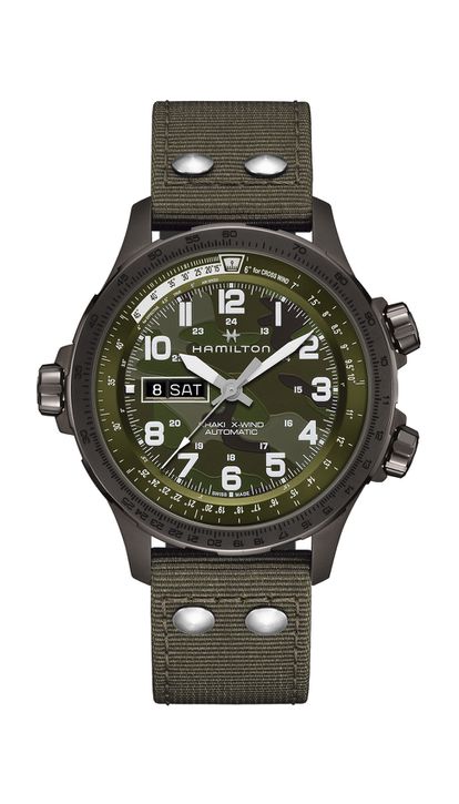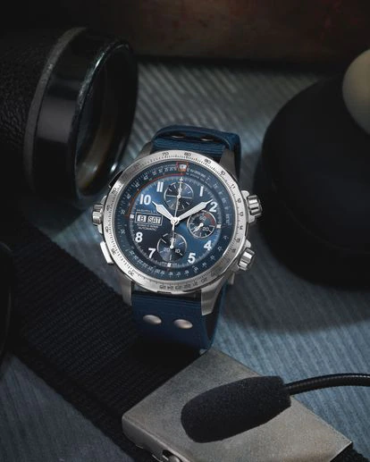 Disponible en tres diseños diferentes, el nuevo reloj está preparado tanto para la cabina como para la vida diaria. El Khaki Aviation X-Wind Auto Chrono, con una contundente caja de 45 mm, cuenta con dos versiones de inspiración militar y actitud urbana. Una esfera marrón combinada con una caja de acero revestida en un beige efecto tormenta de arena; y una caja de acero inoxidable con una esfera de color azul oscuro. Aunque las correas de tela le confieren un aspecto despreocupado, no hay que dejarse engañar por las apariencias: su tejido de alta tecnología garantiza un ajuste cómodo y seguro.