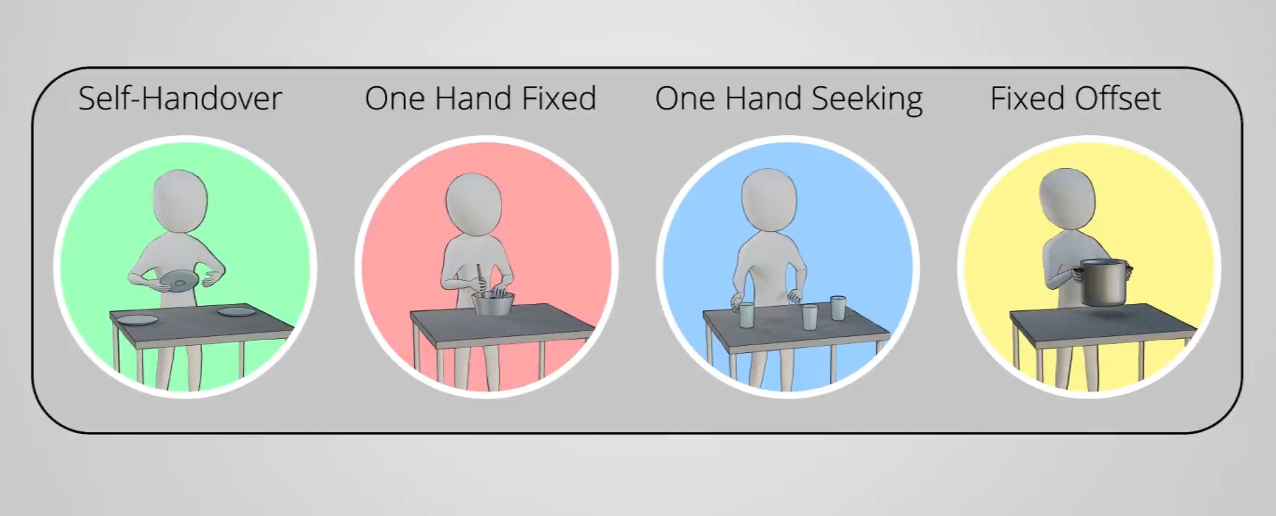 Los investigadores primero hicieron que los humanos que llevaban un equipo de captura de movimiento realizaran una variedad de tareas cotidianas simuladas, como apilar vasos, abrir recipientes y verter el contenido, y recoger elementos con otras cosas equilibradas en la parte superior. Todos estos datos, a dónde van las manos, cómo interactúan, etc., fueron masticados y analizados por un sistema de aprendizaje automático, que descubrió que las personas solían hacer una de cuatro cosas con las manos: