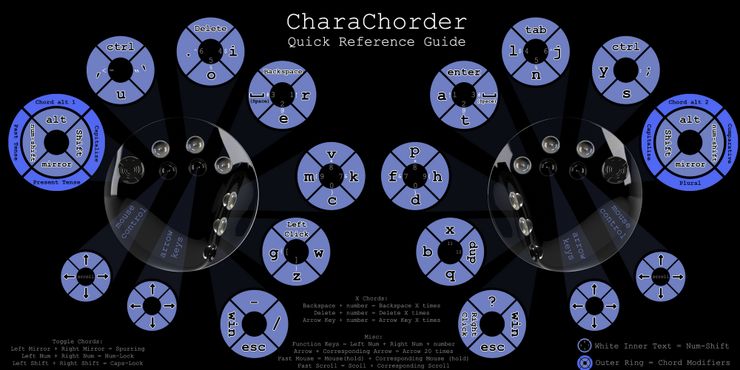 En lugar de depender de un interruptor de teclado normal que solo se mueve en una dimensión, los interruptores de CharaChorder se mueven como un joystick y reconocen el movimiento en las tres dimensiones. Lo que esto significa es que cada mitad permite a los usuarios acceder a más de 300 entradas únicas. Se promociona para ser más ergonómico y permitirá a los usuarios escribir sin tener que levantar los dedos. Cada controlador se puede mapear individualmente para permitir más de 17 mil millones de combinaciones, y se ha diseñado teniendo en cuenta la ambidestreza. Sin embargo, no hay información sobre la adición de emoji.