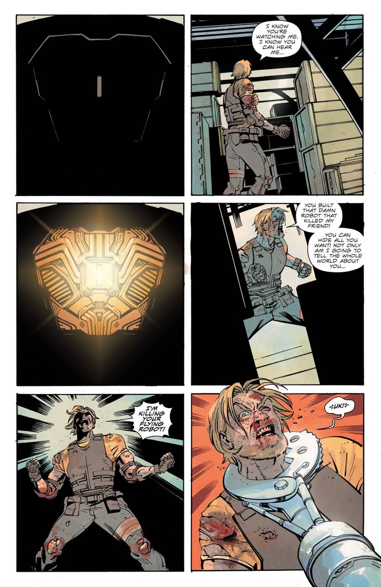 Duque #4, escrito por Joshua Williamson, con arte de Tom Reilly, Jordie Bellaire y Rus Wooton, encuentra al personaje principal investigando una base secreta de MARS Industries escondida en algún lugar del Ártico. Al colarse en las instalaciones, Duke es abordado por algo con una garra robótica de aspecto retorcido.
