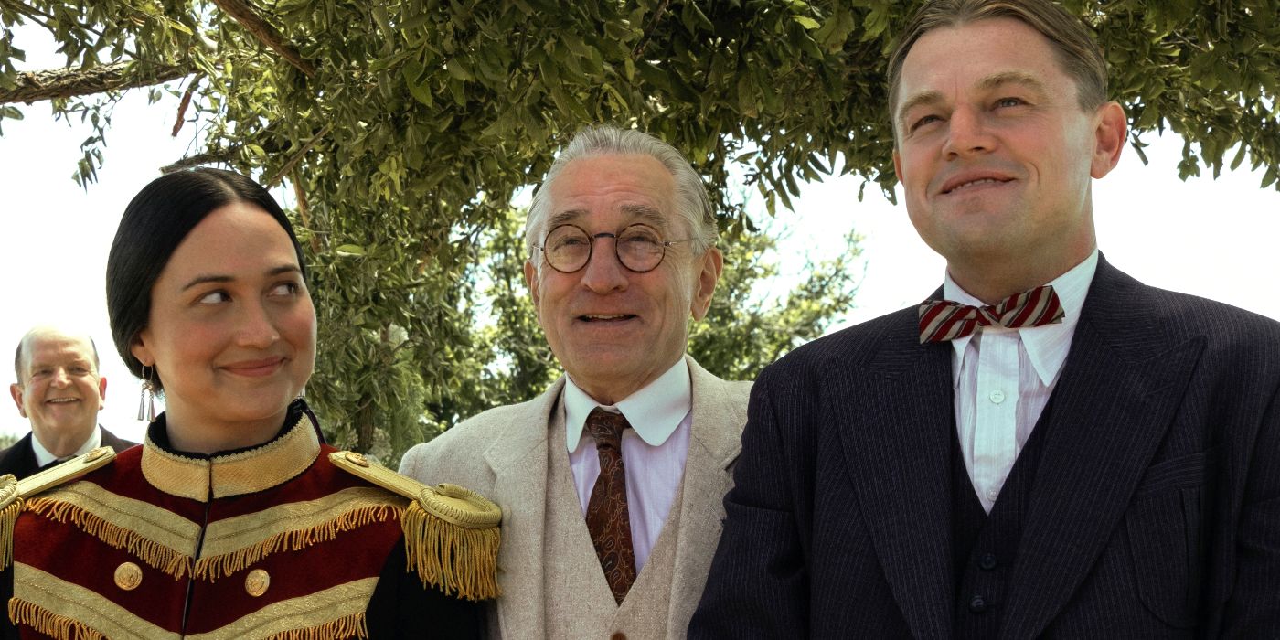 DiCaprio lidera el Asesinos de la luna flor interpretado como Ernest Burkhart, un hombre relativamente poco inteligente y fácilmente manipulable que se enamora y se casa con Molly de Gladstone. En el transcurso de la película, los asesinatos de Osage comienzan a acumularse y se revela que Ernest no solo está involucrado en algunos de estos crímenes, sino que también está envenenando lentamente a su esposa para heredar sus derechos. Básicamente, Ernest está cumpliendo las órdenes de William Hale de De Niro, quien se hace pasar por un filántropo y líder comunitario mientras es el arquitecto de los asesinatos.