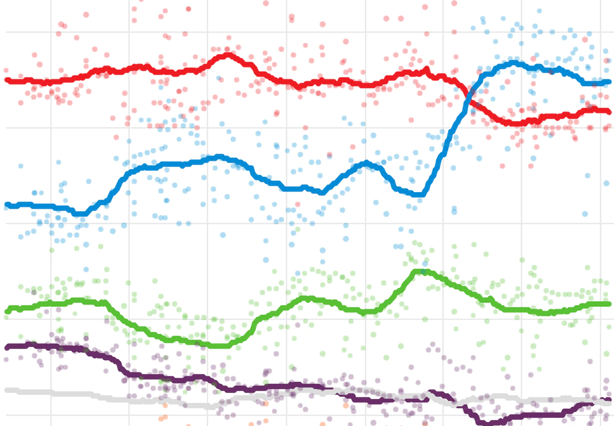 El salto adelante del PP se produjo a principios de este año, coincidiendo con las elecciones en Madrid y el desplome de Ciudadanos. Ahora las fuerzas parecen más estabilizadas. Desde antes del verano solo se observan tendencias lentas: (1) El PSOE le ha recuperado algo de terreno al PP; (2) Vox sube unas décimas; (3) Más País pierde el impulso que logró con la campaña madrileña; (4) Podemos sube; y (5) Ciudadanos se queda plano con poco más del 3% de los votos.
