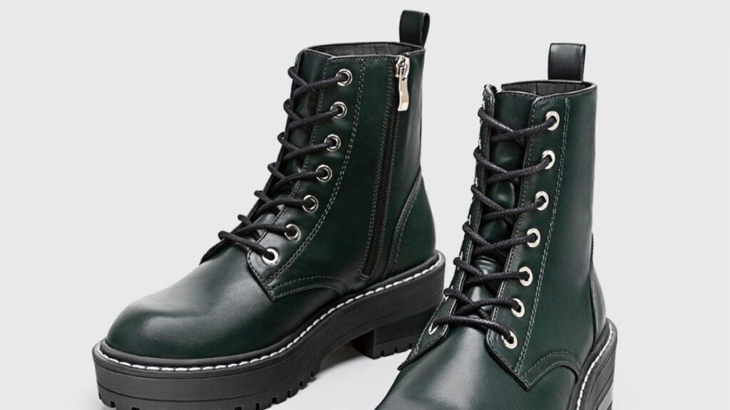 Los botines militares son una tendencia de esta temporada que Stradivarius incorpora a su nueva colección. En color verde y con una suela destacable, estos botines son ideales para combinarlos con todo tipo de prendas. Pantalones, faldas o incluso vestidos, por 39,99 euros podemos tener la pieza más buscada de este otoño, comodidad, estilo y versatilidad se fusionan en estos botines que nos quedarán bien con casi todo nuestro armario. El verde de estos zapatos es el toque de distinción y elegancia que estamos buscando para un otoño repleto de acción. Si buscas unos botines, toma nota de éstos de Stradivarius, están destinados a triunfar.