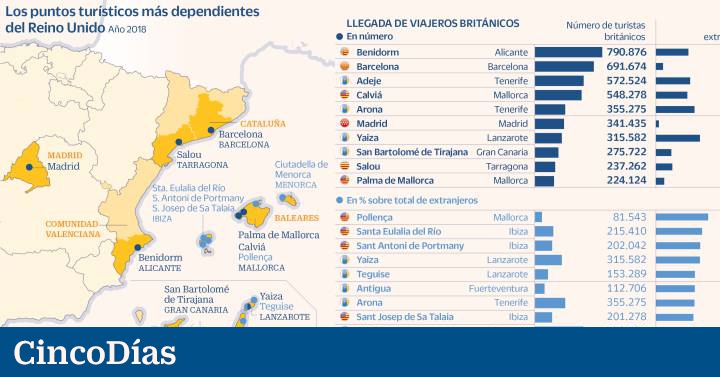 El nuevo frenazo a la desescalada en Reino Unido, que no eliminará todas las restricciones al movimiento ni al contacto social hasta el 19 de julio, ha supuesto un jarro de agua fría para España, ya que es el primer gran emisor de viajeros, con 18,1 millones de viajeros, un 21,6% del total. Pero ese porcentaje es mucho más elevado en algunos destinos de Baleares o Canarias (Benidorm y Salou son las dos únicas excepciones penínsulares) y la posibilidad de que los primeros turistas no lleguen hasta finales de julio, en el más optimista de los escenarios, ha extendido el pesimismo entre la industria turística.