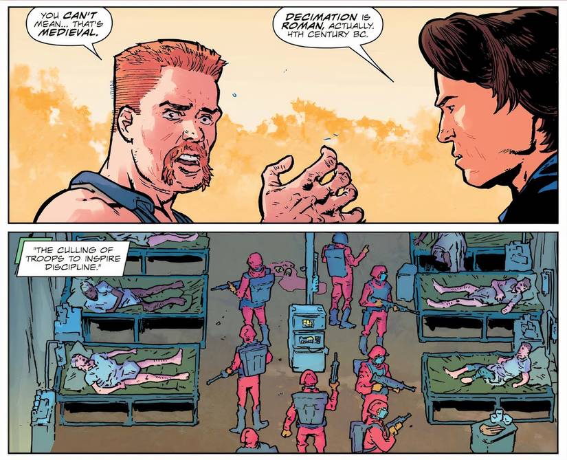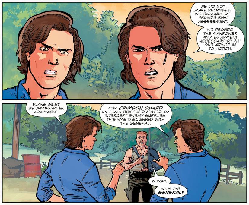 Como se muestra en Bien #1, los Crimson Twins entran en una discusión bastante acalorada con un líder local, frustrados porque decidió retirar a sus hombres del campo de batalla en lugar de asegurar una victoria. Cuando el comandante de campo explica que estaba tratando de salvar las vidas de sus hombres heridos, Tomax y Xamot explican fríamente que calcularon un veinte por ciento de bajas en la batalla, el mismo porcentaje de heridos actualmente. Luego, los gemelos ordenan a sus guardias carmesíes que maten a los soldados heridos y al comandante de campo, explicando que no pueden dejar que su reputación se vea empañada debido a la “cobardía”.