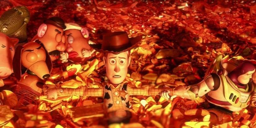 En Toy Story 3Woody y sus amigos deben dejar a un lado sus diferencias y mantenerse unidos después de que se envíen accidentalmente a la basura. Finalmente, la pandilla termina en un incinerador de basura, y uno por uno se dan cuenta de que no hay escape. Renunciando a toda esperanza, se toman de las manos y se preparan para la muerte mientras descienden lentamente al horno. Por supuesto, Woody y la compañía son salvados por los juguetes alienígenas de Andy, pero Historia de juguete 3La escena del horno sigue siendo una de las escenas más emotivas jamás hechas por Pixar.