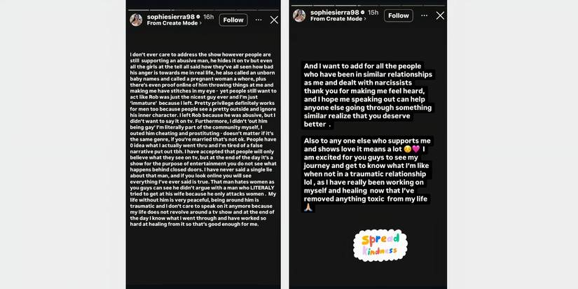 Debido a sus serias acusaciones contra Rob, está claro que su relación fue traumática para ella. Es probable que Sophie todavía esté curando de ese trauma, y su publicación de Instagram es una advertencia para otras mujeres que podrían involucrarse con Rob. También es un recordatorio para los fanáticos de que lo que ven en la televisión nunca es la historia completa.