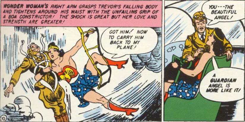 Al no ver otra forma de evitar que el bombardero nazi alcance su objetivo, Steve Trevor causa una colisión en el aire que destruye al bombardero y lo deja cayendo en su muerte, con la explosión dañando su paracaídas. Wonder Woman salva a Steve Trevor, sin embargo, atrapándolo en el aire mientras cuelga de una escalera unida a su avión invisible. El casi sacrificio de Steve Trevor en el origen cómico de Wonder Woman puede haber inspirado su desaparición de DC Extended Universe.