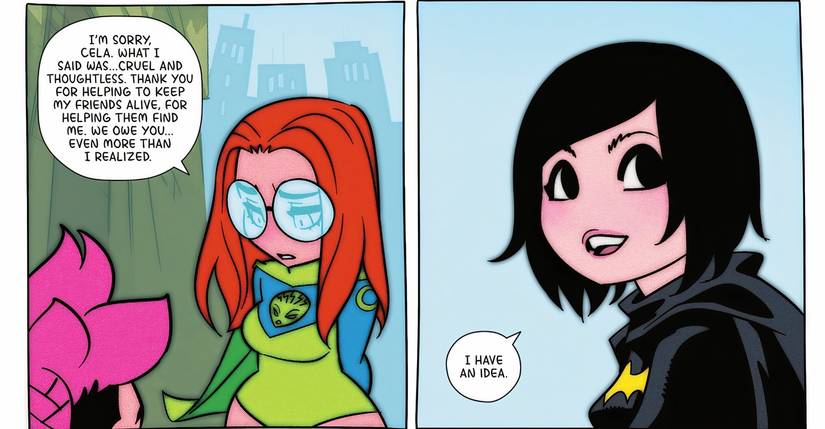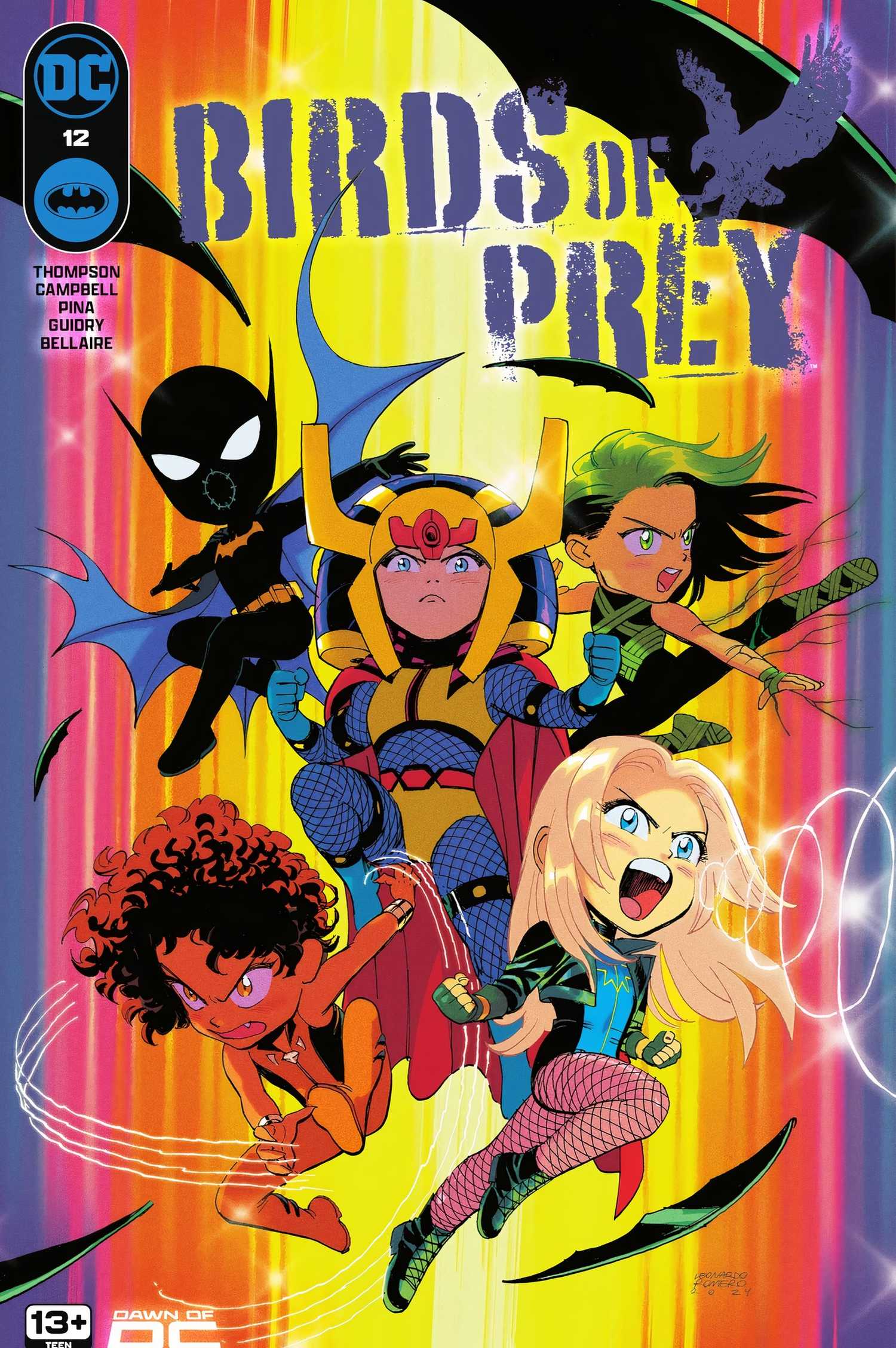 En Aves rapaces En el número 12 de Kelly Thompson, Javier Pina, Sophie Campbell y Gavin Guidry, el equipo es transportado a (y atrapado en) una dimensión de bolsillo de dibujos animados de estilo chibi, y Barbara Gordon conoce al nuevo personaje Cela por primera vez. Cela ya ha admitido que los Pájaros, y específicamente Babs, son responsables de matar a su madre en algún momento en el futuro, y Babs demuestra una vez más que está dispuesta a matar para resolver sus problemas cuando propone un nuevo y violento plan para salvar a su equipo, incluida Cela.