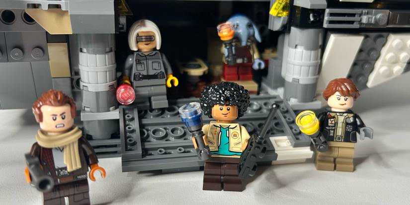 El modelo presenta múltiples torretas con cañones y las torretas abovedadas que Wim y Fern usan en el programa para defenderse de los cazas X-Wing de la Nueva República cuando Jod inicialmente los convenció de que no se podía confiar en ellos. Del mismo modo, las minifiguras también tienen grandes detalles, y los niños construidos con ladrillos incluso tienen los mismos parches de su mundo natal que Kh’ymm, parecido a un búho, usó para concentrarse en la ubicación de At Attin. La minifigura de Jod también se ve genial y viene con una pistola de chispa, aunque no pude resistirme a agregar un sable de luz con empuñadura dorada como el que le dice a Wim en Tripulación esqueleto episodio 5.
