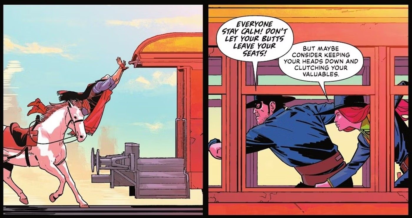 “/> Además de darle a Superman un traje nuevo que enorgullecería a cualquier purista de sombrero blanco, también parece estar robando un tren, sin el uso de armas de fuego. La idea de que Superman sea un vaquero sin armas en una época en la que las armas eran la norma habla de la esencia de su personaje. En muchos sentidos, satisface el núcleo de los héroes arquetípicos con reglas sin armas.
