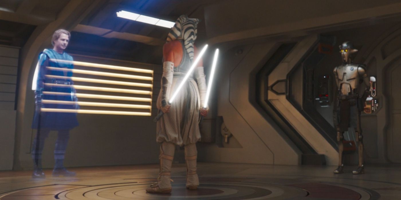 Al comienzo de Ahsoka En el episodio 7, la Jedi titular (interpretada por Rosario Dawson) está entrenando con un holograma de su maestro Anakin Skywalker. Ofreciendo su guía y motivación para seguir perfeccionando sus habilidades, esta grabación pasada de Skywalker menciona a los tres nombres más importantes de la Alianza Separatista durante la Guerras de clones era. Sin embargo, sólo un nombre en particular ha generado tanta emoción que se ha visto en varias reacciones en Twitter, algunas de las cuales se pueden ver a continuación, incluida una de @nightwaynes quien fue “sin habla”: