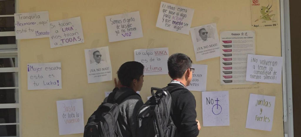 Oaxaca, Oax.- Las denuncias por acoso sexual y violencia de género van en aumento contra profesores de los planteles del Sistema de Colegio de Bachilleres del Estado de Oaxaca (Cobao), desde el pasado 2 de marzo se dieron las primeras denuncias, primero en el plantel 01 “Pueblo Nuevo” después en los planteles de Tlaxiaco (38), Huatulco (22); y este jueves, alumnas del plantel 39 “Nazareno” en el municipio de Etla, Oaxaca, exhibieron a su profesor de Informática, a quien acusaron por acoso.