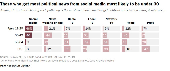 Un problema con esa conclusión tiene que ver con la demografía de las redes sociales. La investigación de la firma también descubrió que los consumidores de noticias de las redes sociales eran jóvenes: el 48% de los que usaban principalmente las redes sociales para noticias tenían entre 18 y 29 años, por ejemplo. También tendían a tener niveles más bajos de educación formal, ya que solo el 26% tenía un título universitario, frente al 47% de los que leían sitios web de noticias o el 49% que recurrían a la impresión. (Por supuesto, es probable que esta falta de educación superior esté, en parte, vinculada al hecho de que los usuarios de las redes sociales son más jóvenes).