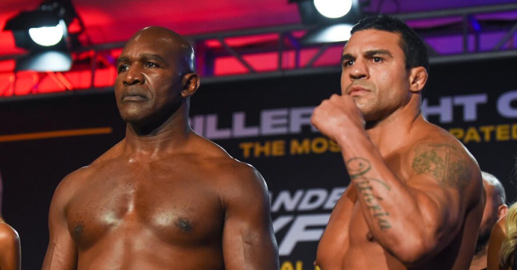 Evander Holyfield, de 58 años, cayó al suelo y se detuvo en la primera ronda por Vitor Belfort. No es agradable de ver.