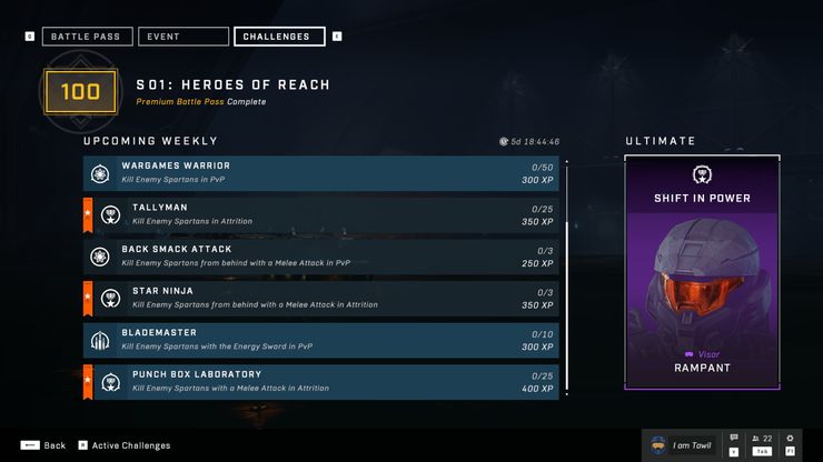 - Mata a los Spartan enemigos con la pistola Sidekick en Desgaste (5) – 300 XP