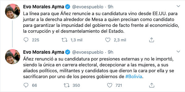 — Evo Morales Ayma (@evoespueblo) September 20, 2020
