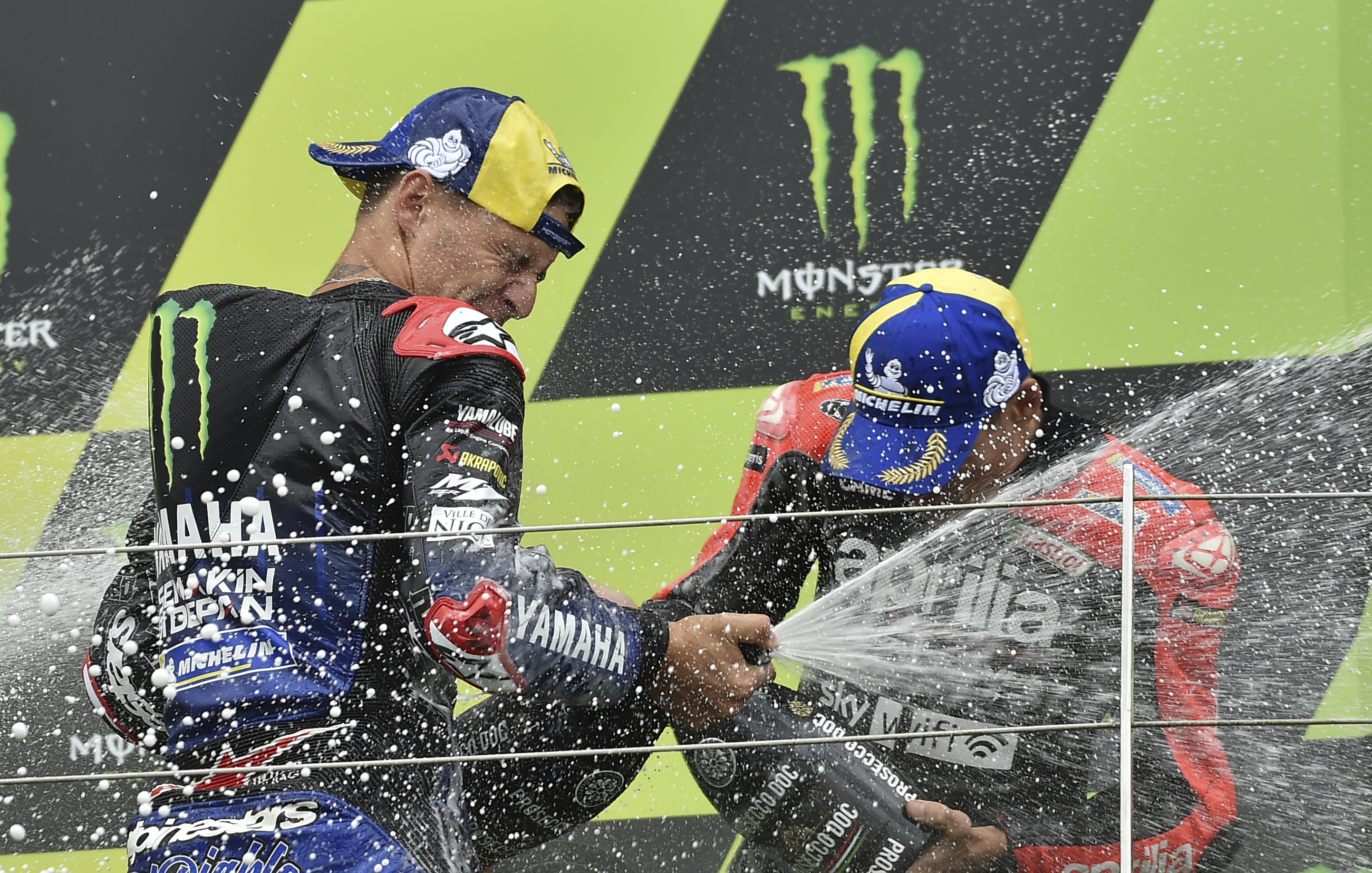Mientras tanto, resistía en la primera plaza Pol Espargaró, bien situado desde la pole. Y aguantó las cinco vueltas que se dio Quartararo para tomar posiciones. Le adelantó el francés y poco después también su hermano Aleix, crecido a lomos de una Aprilia para la que este año parece brillar el sol cada día. El toma y daca entre hermanos dio paso a otro cara a cara tanto o más emocionante cuando apareció desde las tinieblas Alex Rins, dispuesto a firmar una de esas carreras suyas: décimo en parrilla, el barcelonés fue escalando metros en los primeros giros hasta soñar con el triunfo. Inalcanzable la Yamaha, Rins defendió la plaza con soltura y escapó hasta el podio, por fin, ya era hora, en un fin de semana afortunado y ayudado por el duelo postrero entre Aleix y Miller.