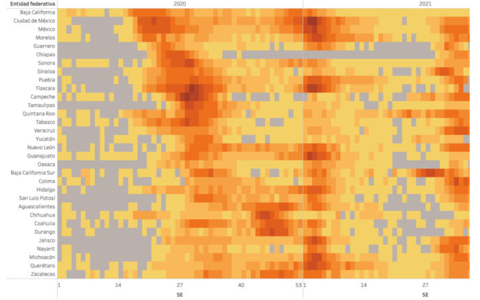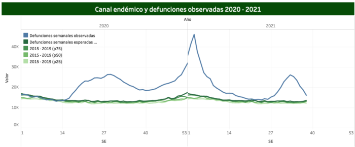 El periodo con mayor mortalidad fue en la tercera semana de enero de 2021, fecha en que el Covid-19 saturó los hospitales del país y se registró la crisis para obtener oxígeno.